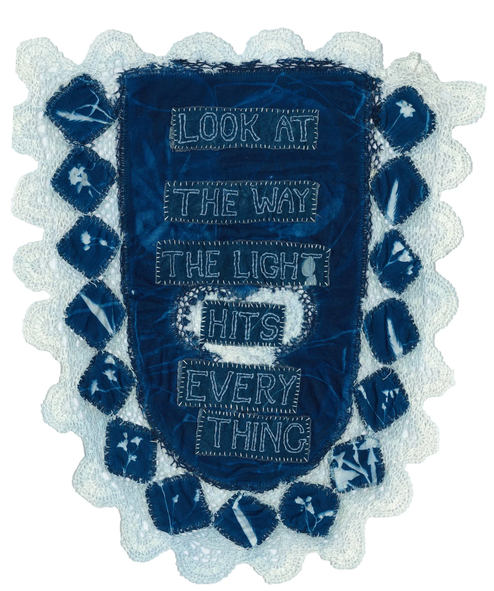 viewing techniques is an exhibition that explores the dynamic interaction between text, texture & textiles through cyanotype, embroidery and found surfaces. These works examine ideas such as faith, embodiment and the natural world.