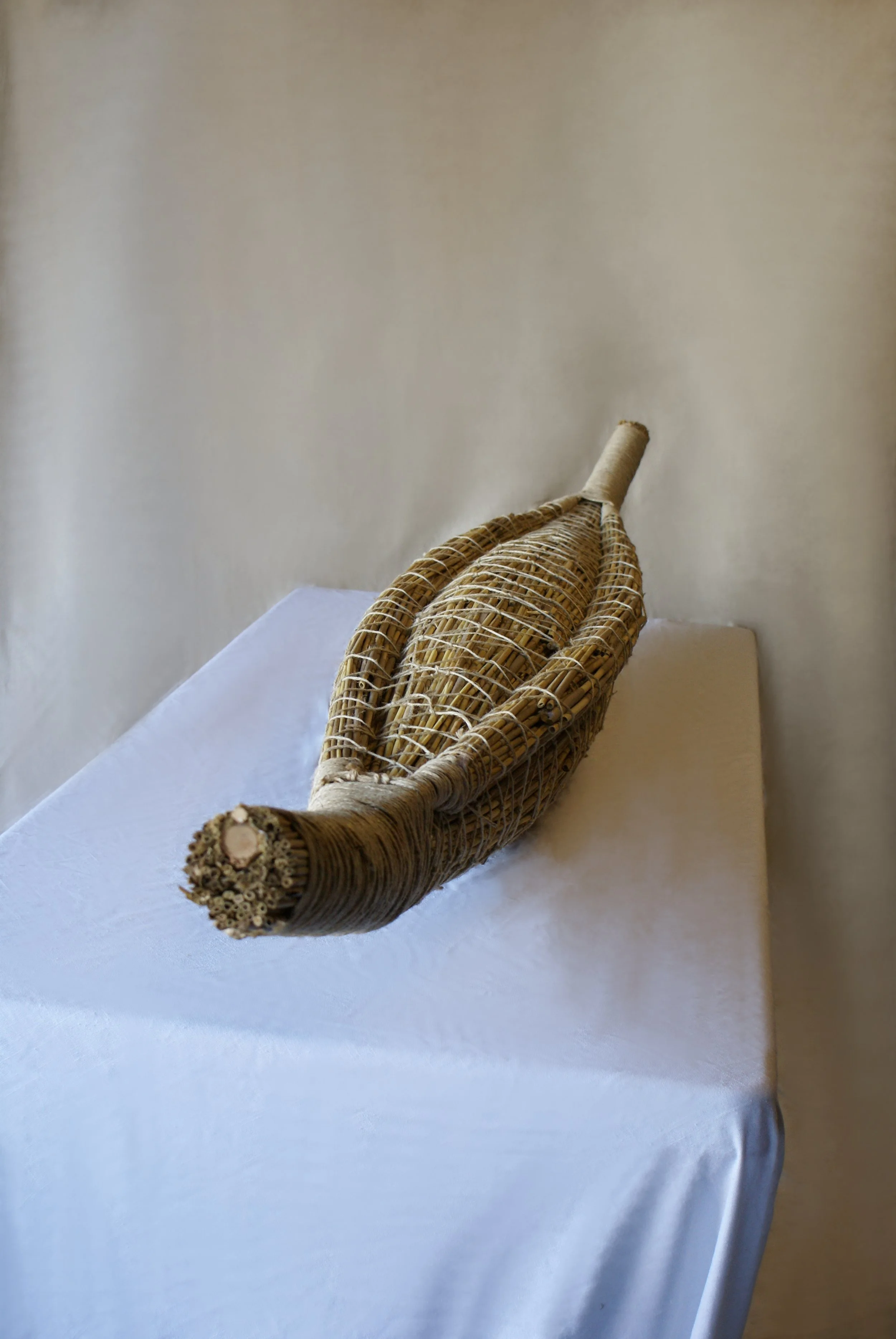 He drew his inspirations on his experience of commercial fishing with his grandfather and helping his father build a fishing boat. Rex then read the paper compiled by Rona Hollingsworth to discover the range of fibre materials used to build The Tasmanian Aboriginal Water Craft.